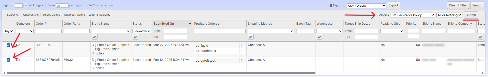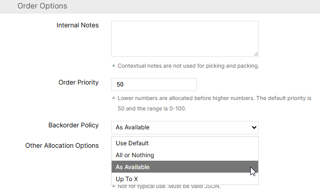 The Backorder Policy can be updated on individual orders. This can be done via the specific Order screen or in the Orders grid screen.