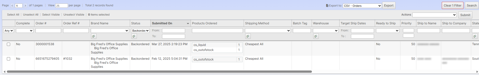 Select the order(s) with the check boxes on the right-hand side of the screen.